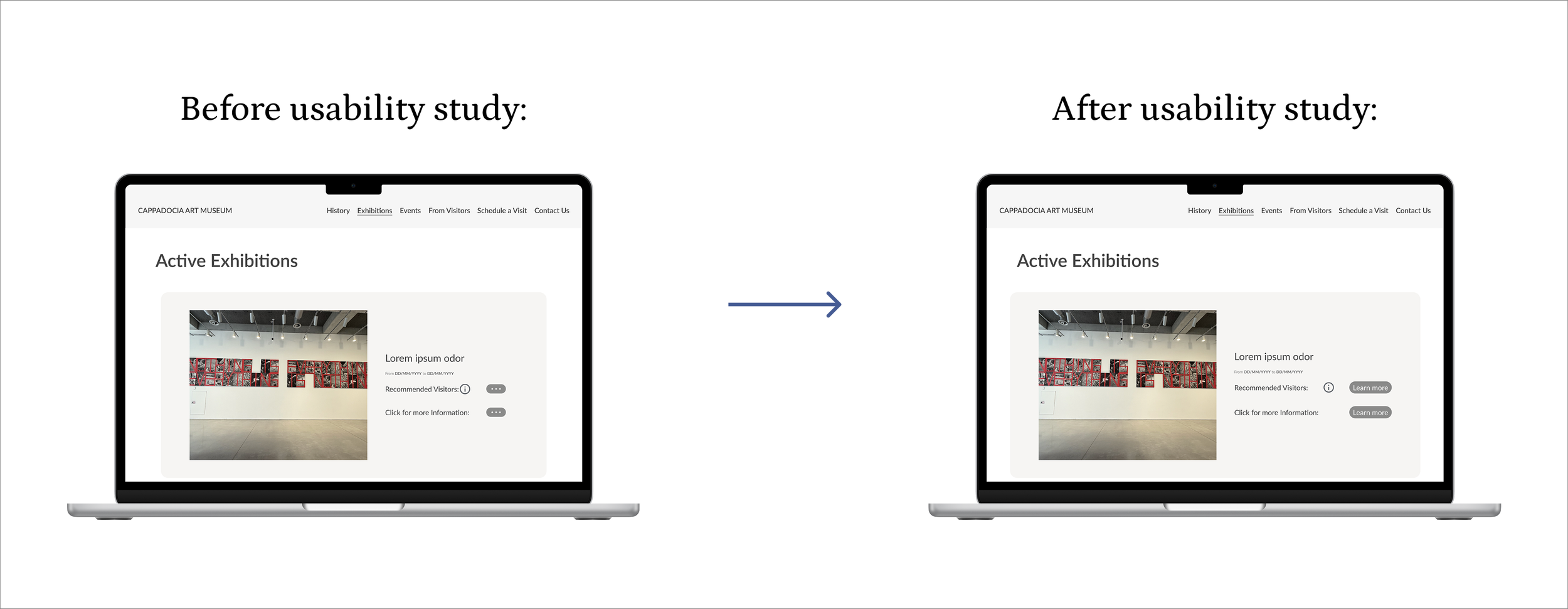 Text-based interactions were replaced with clear CTA buttons to make key exhibition details faster and more intuitive to access.
