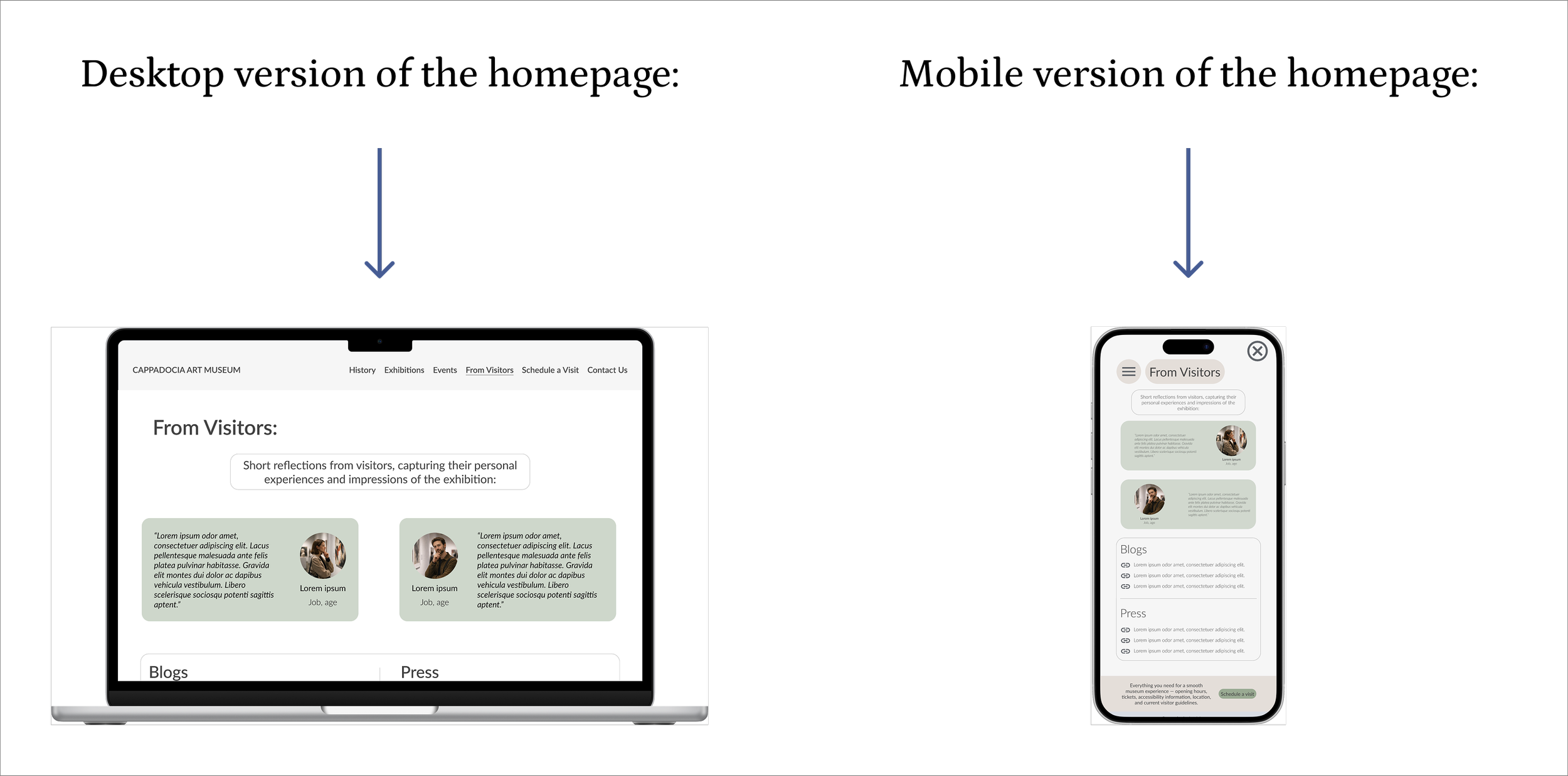 My main responsibility was creating a responsive website, starting my second portfolio project based on a prompt from an earlier course and focusing on clear, adaptable layouts that support exhibition discovery, ticket purchasing, and visit planning across devices.