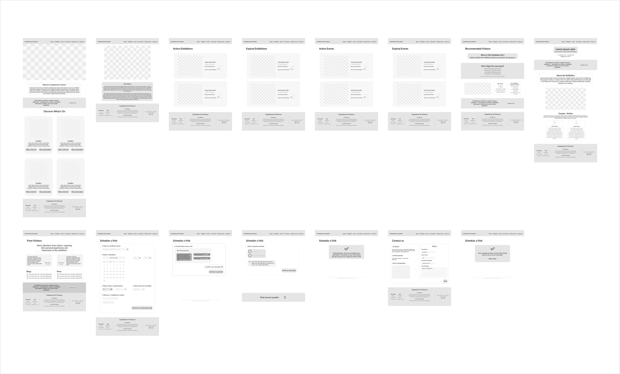These paper wireframes were created specifically for the museum website project to explore how exhibition content, navigation, and supporting information adapt across screen sizes. Exhibition cards, the hamburger menu, and key CTAs were adapted across screen sizes to preserve content hierarchy, usability, and clear user actions before moving into digital wireframes.