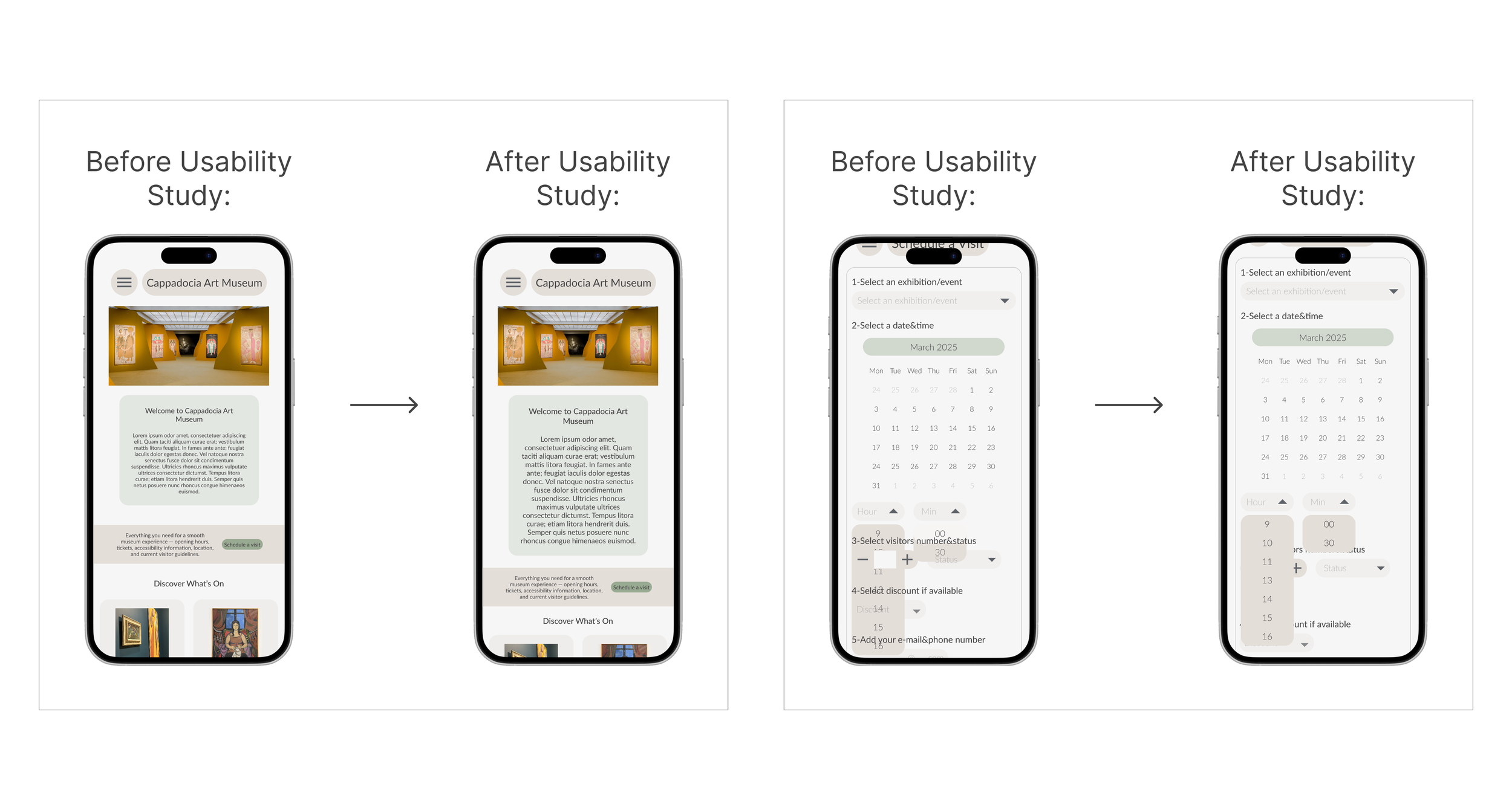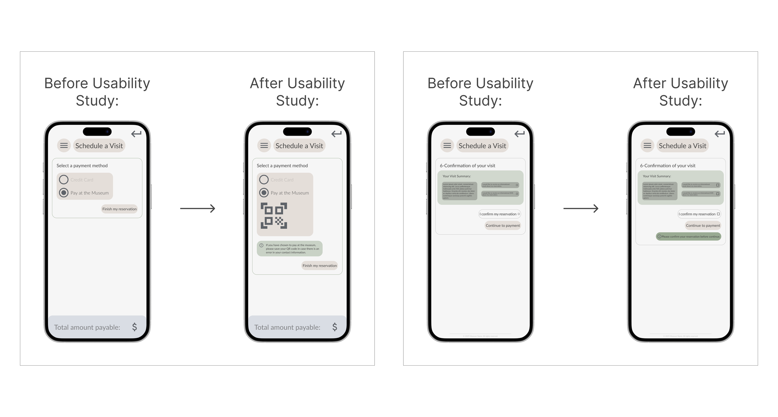 I recognized that the pre-visit experience is as important as the on-site visit. Simplifying flows, improving feedback, and making small, evidence-based refinements significantly increased learnability, user confidence, and overall usability.